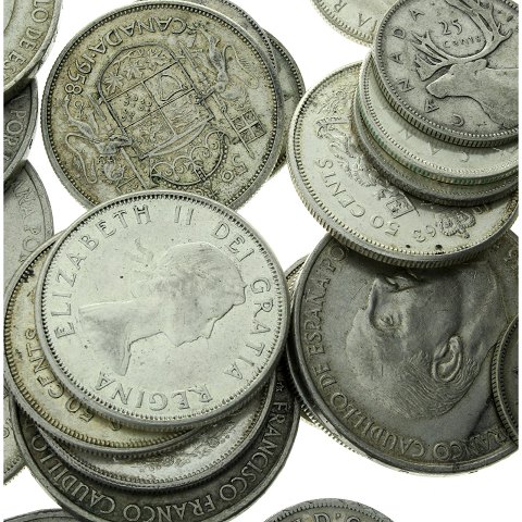 Forskellige mønter og lande. 2 kg finsølv