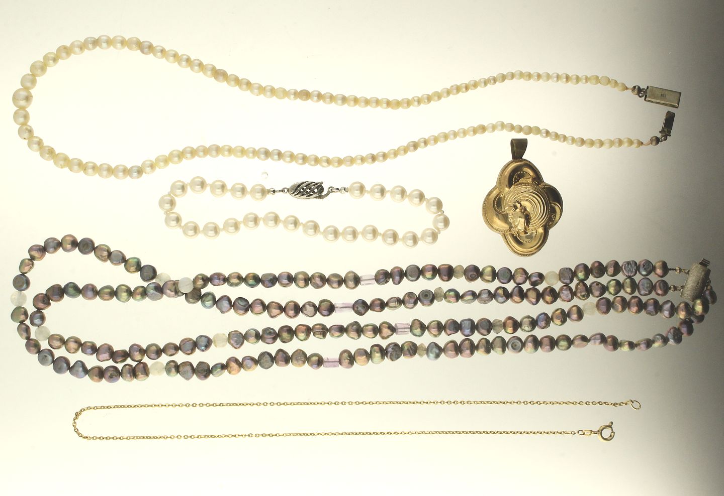 Samling smykker, flere med låse af sølv (5)