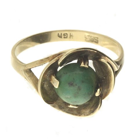 Hugo Grün - Ring af 14 kt. guld fattet med grøn sten