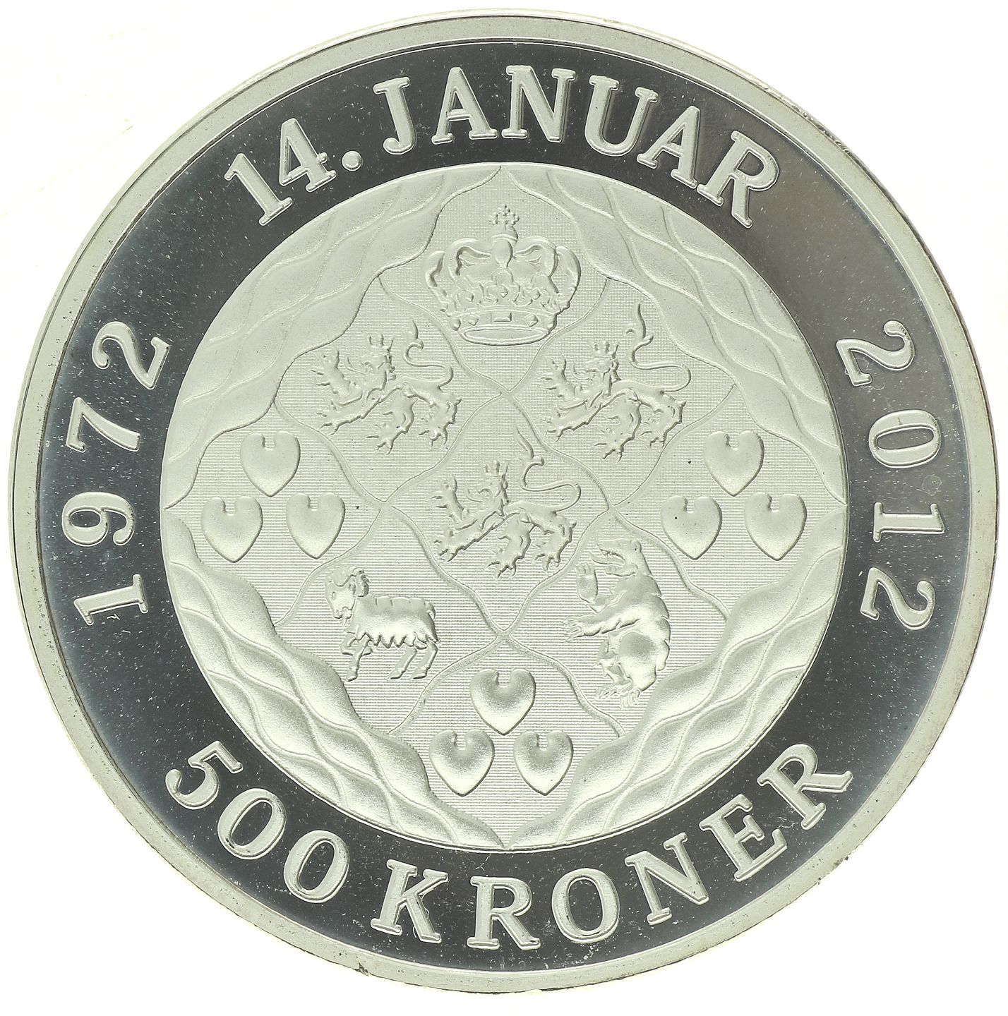 Danmark - 500 kroner - 2012 - Margrethe II - Kroningsjubilæum - 1oz finsølv