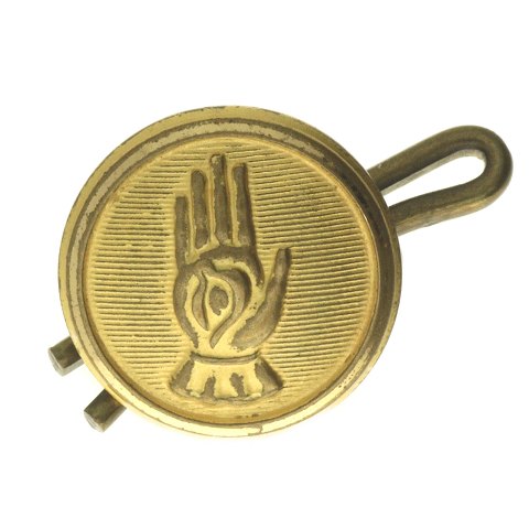 Politi uniformsknap af messing med motiv i form af Midas hånd