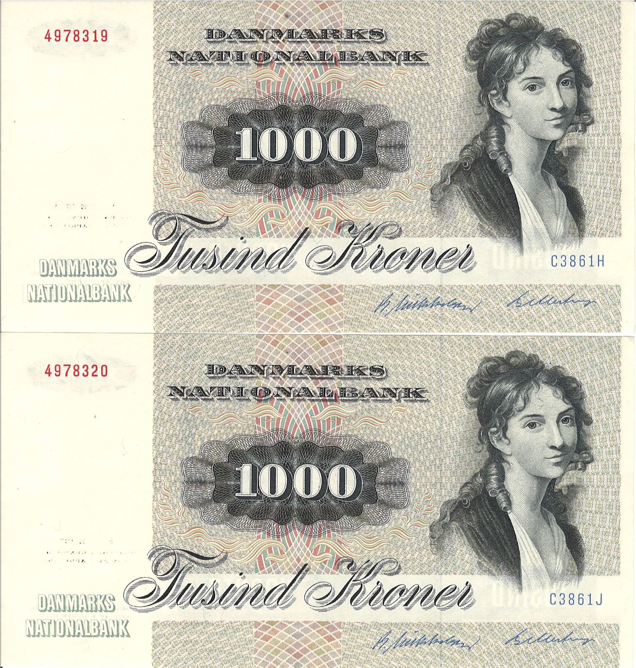 Danmark - 1000 kroner 1986 - C3 - 2 stk - Sieg 145, DOP 153, Pick 53