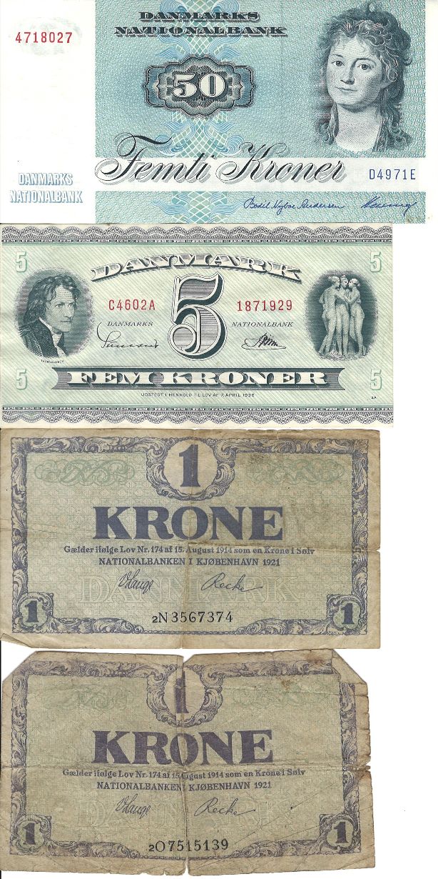Danmark - pengesedler og præmieobligation - 1921-1997 - 7 stk