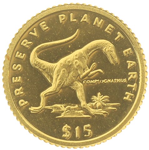 Liberia - 15 Dollars - 1993 - Compsognathus - guld