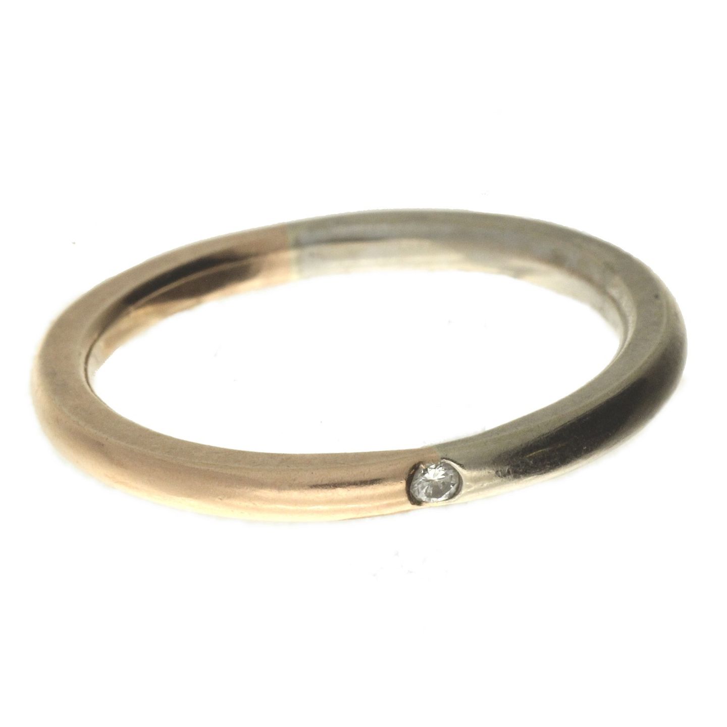 Ring af tofarvet 14 kt. guld fattet med en brillant på ca. 0.02 ct.