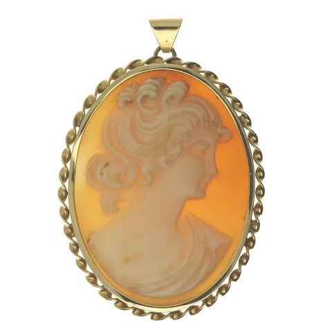 Camé-vedhæng udført af 14 kt. guld. L. inkl. øsken: ca. 5 cm. Vægt: ca. 10,40 gr.