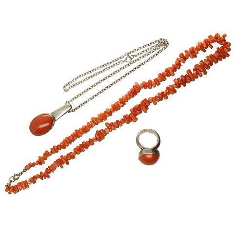 Vedhæng af sterling sølv fattet med koral, L. inkl. øsken: ca. 4,2 cm