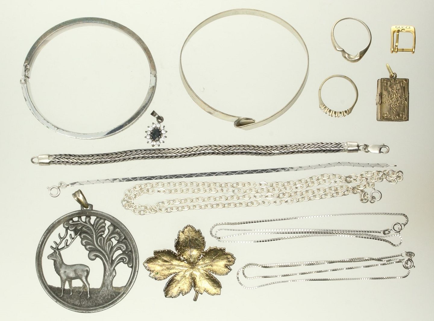 Samling smykker primært af sølv og forgyldt sølv (14)