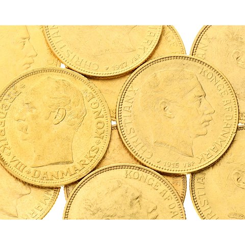 2 stk danske 20 kr guld - samt 1 stk 10 kr guld - prisen reguleres til dagens pris
