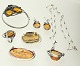Samling smykker af sølv fattet med rav bestående af: