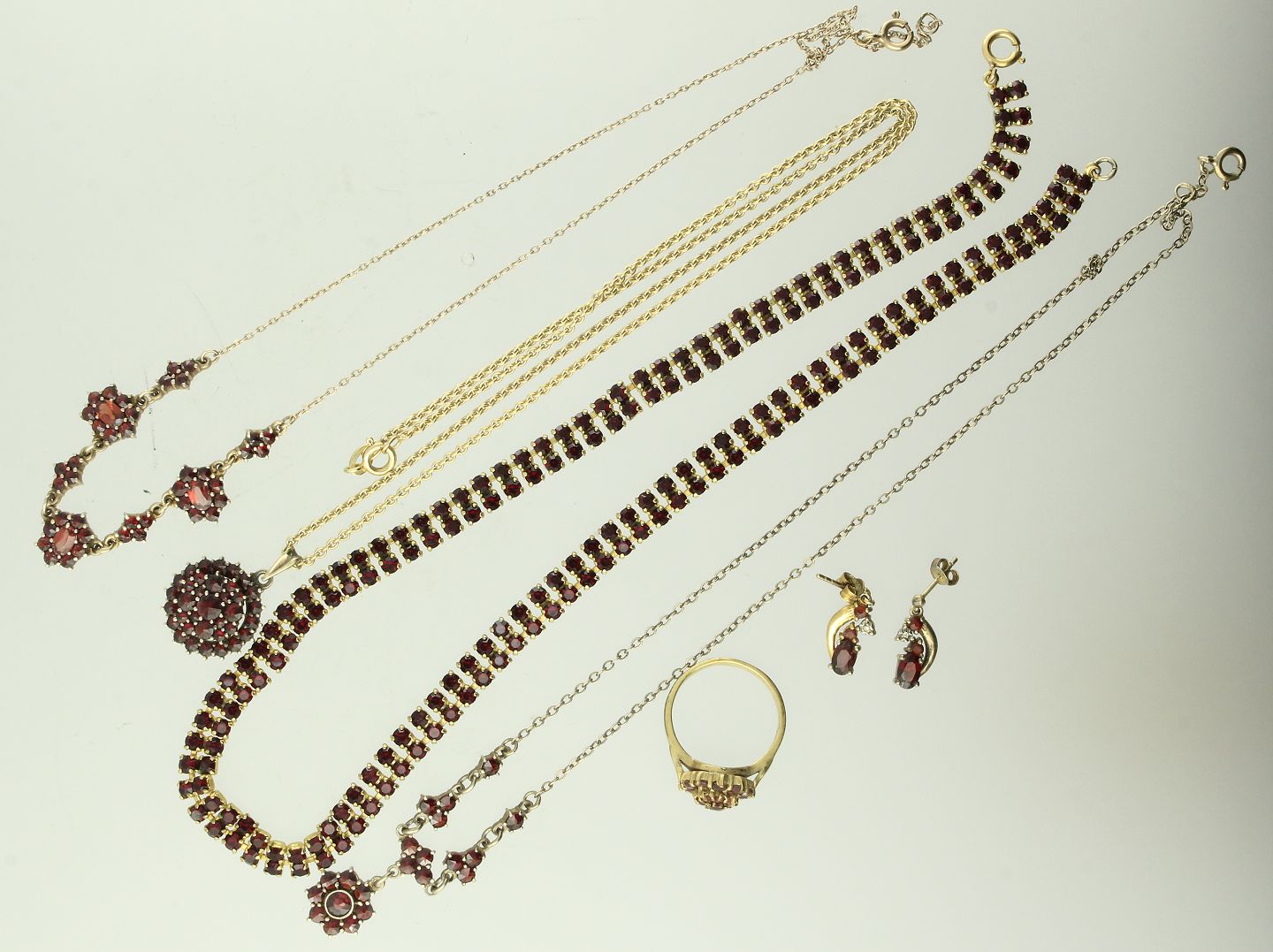 Samling smykker af forgyldt sølv fattet med granater (7)