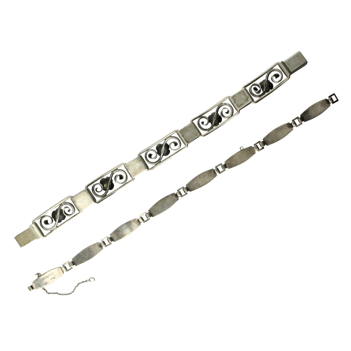 To leddelte armlænker af sølv, bl.a. et skønvirke