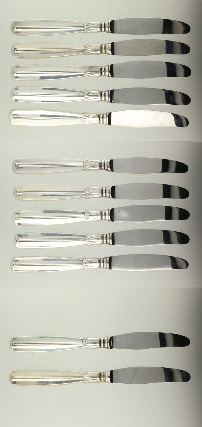 W & S. Sørensen - Lotus - 12 knive med skafter af sølv, blade af rustfrit stål