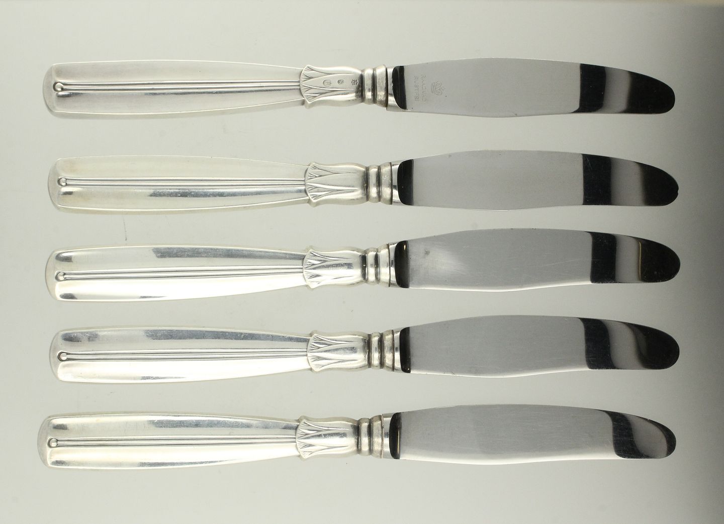 W & S. Sørensen - Lotus - 12 knive med skafter af sølv