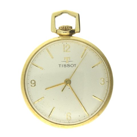 Tissot damelommeur i urkasse af gulddoublé med lys skive, stregindikation og central sekundviser. Manuel mekanisk urværk. Urkasse diameter 32 mm.