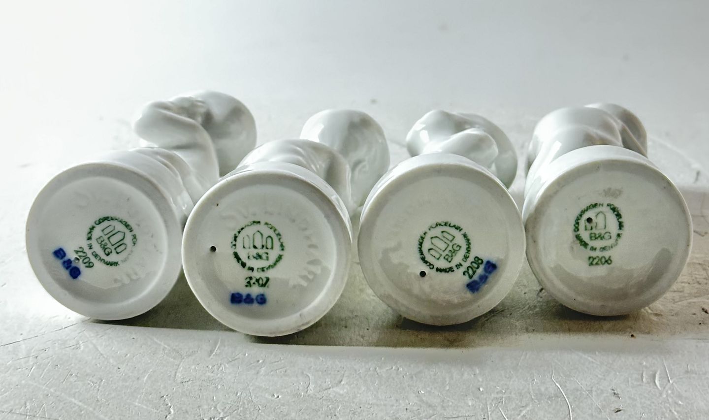 Bing & Grøndahl - Fire piner - mavepine, tandpine og hovedpine dessin nr. 2206, 2207, 2208 og 2209