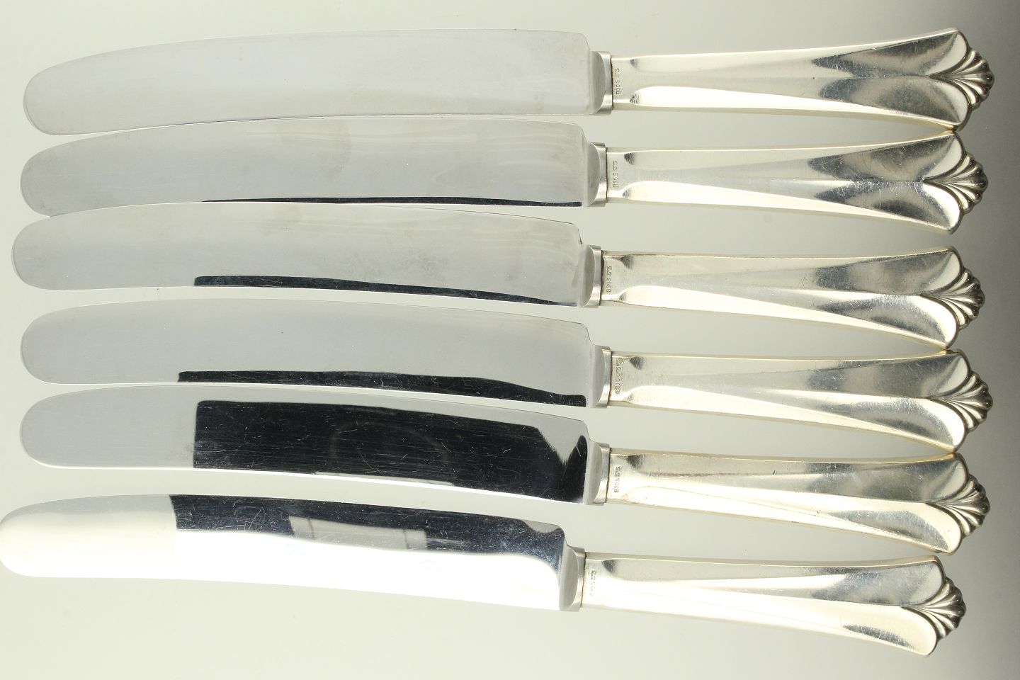 David Andersen - 12 norske knive 'rådhus m. vifte' med skafter af 830 sølv, blade af rustfrit stål