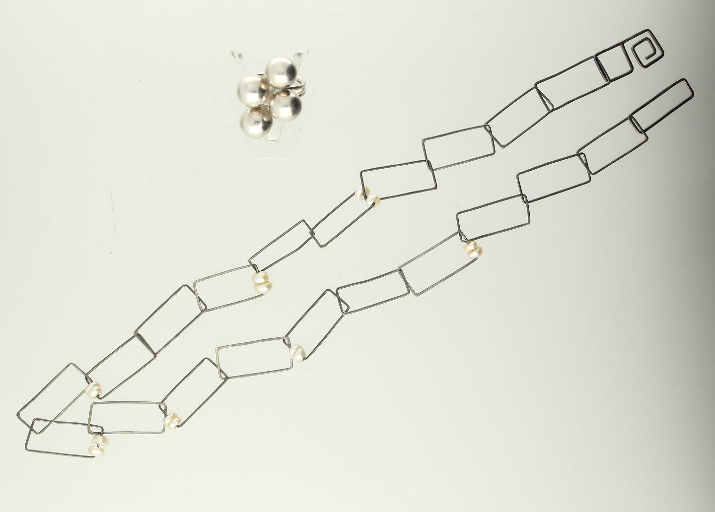 Ring str. 55 samt halskæde fattet med perler, L. ca. 51 cm.