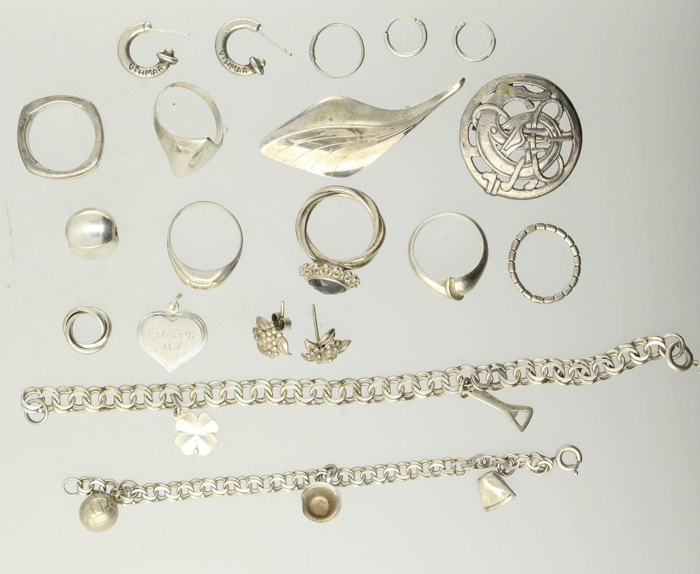 Samling smykker af sølv bestående af: