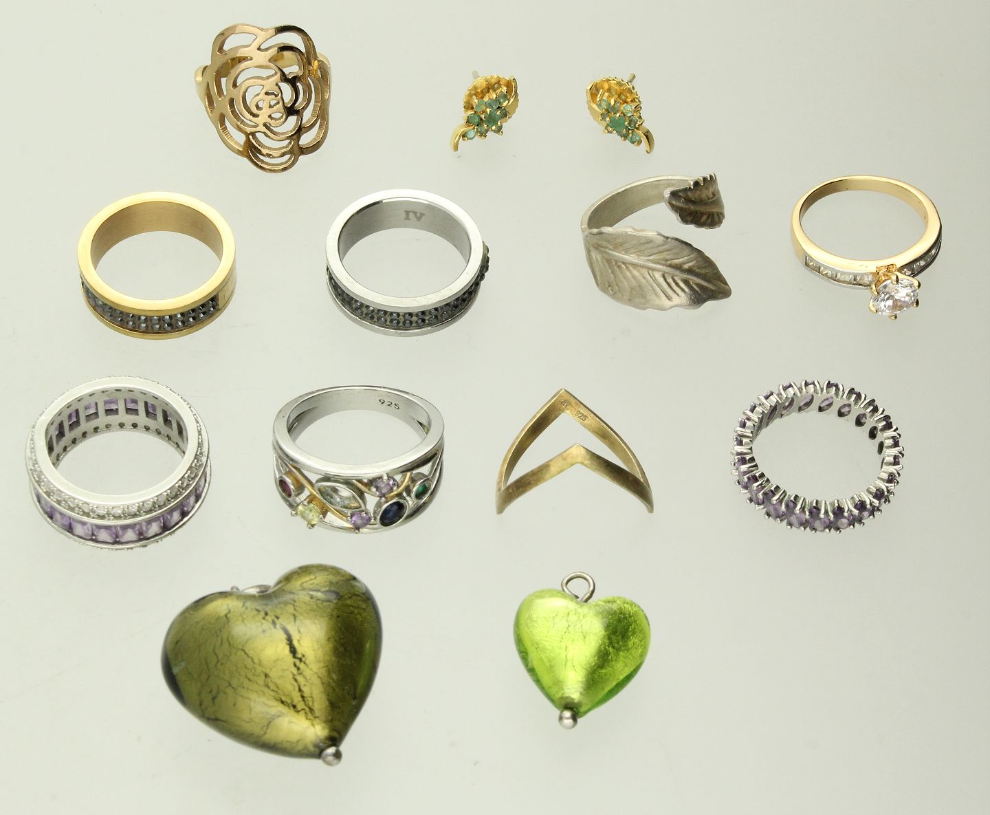 Samt diverse bijouteri bestående af fem ringe, to vedhæng samt par øreringe.