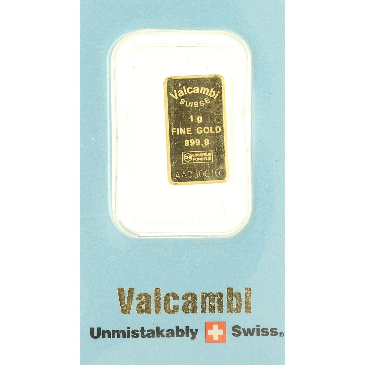 Valcambi - 1 gram - fine gold - finguld barre