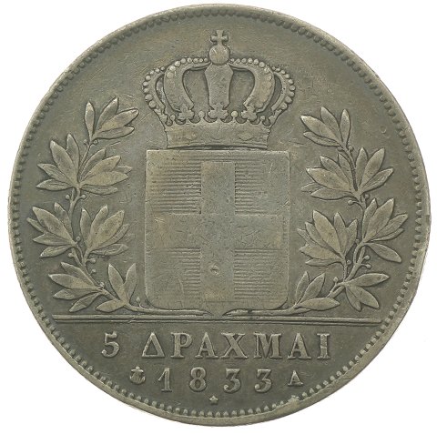 Grækenland - 5 drachmai 1833 - Othon - sølv - KM# 20