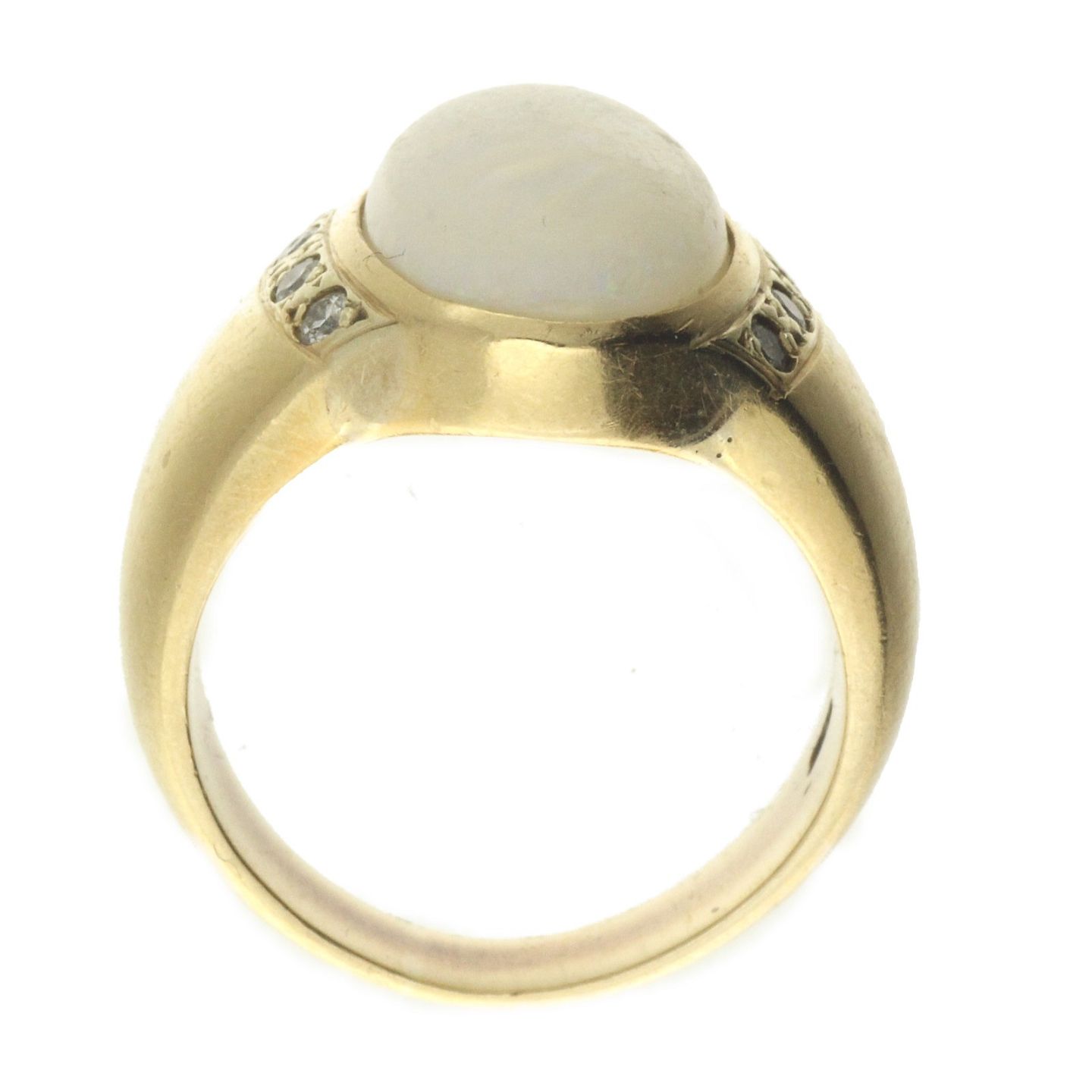 Ring af 14 kt. guld fattet med opal samt otte små brillanter på i alt ca. 0.12 ct.