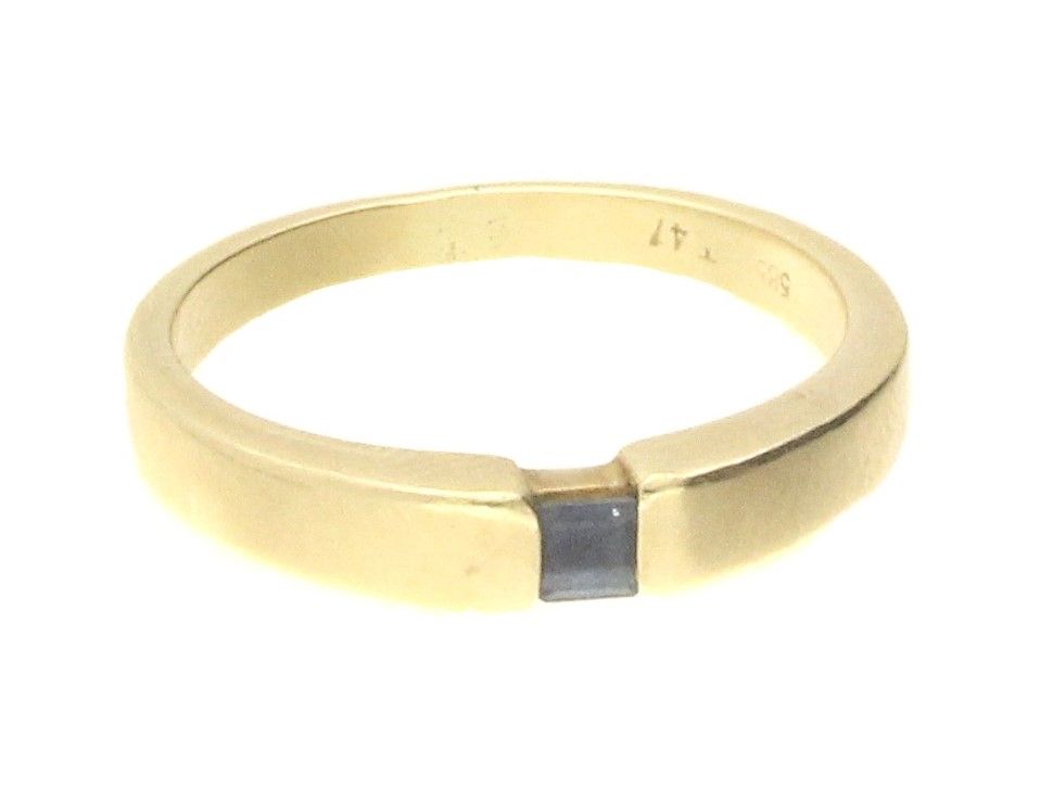 Ring af 14 kt. guld fattet med blå sten
