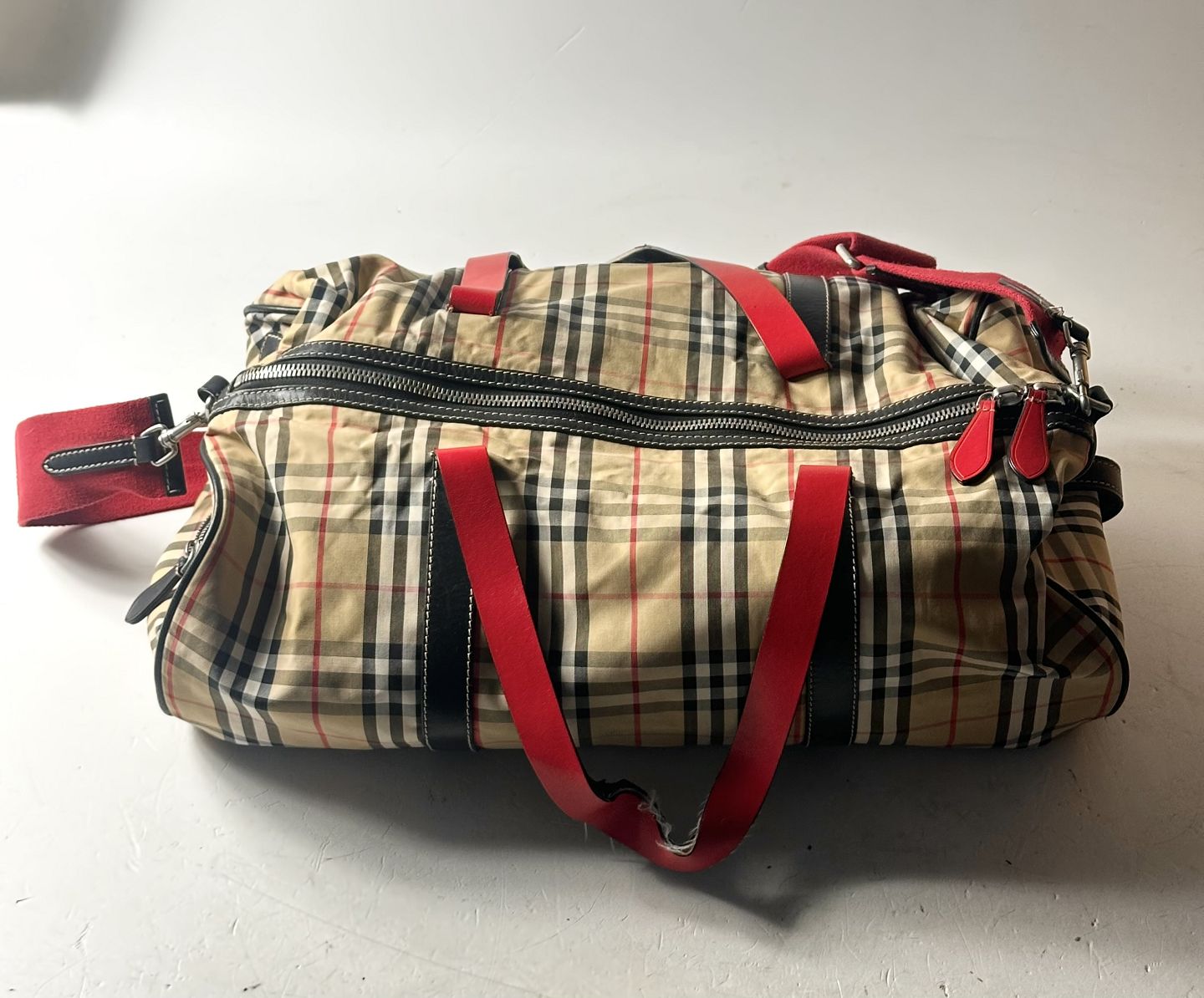 Burberry - Kennedy vintage taske af ternet nylon, justerbar rem af rødt stof.