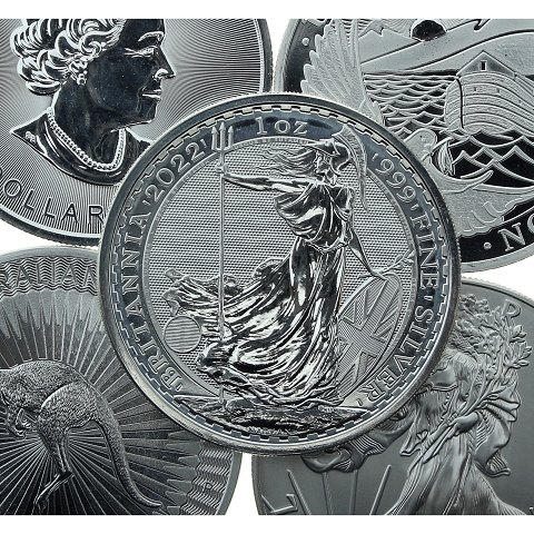 Diverse 1 ounce finsølvsmønter - 125 stk - vort valg - leveres i tutter