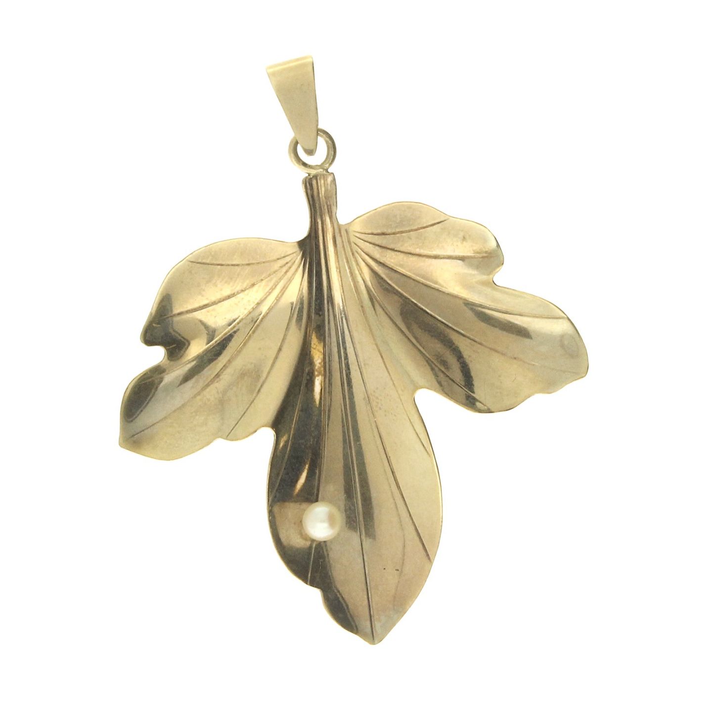 Hermann Siersbøl - Blad vedhæng af 8 kt. guld fattet med perle