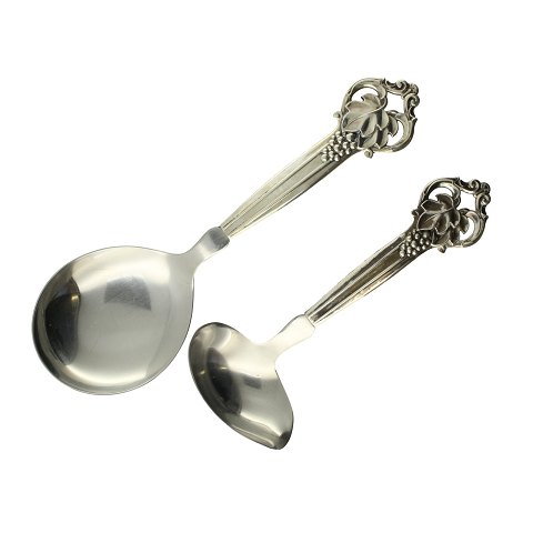 Serveringsske samt sovseske med skafter af sølv