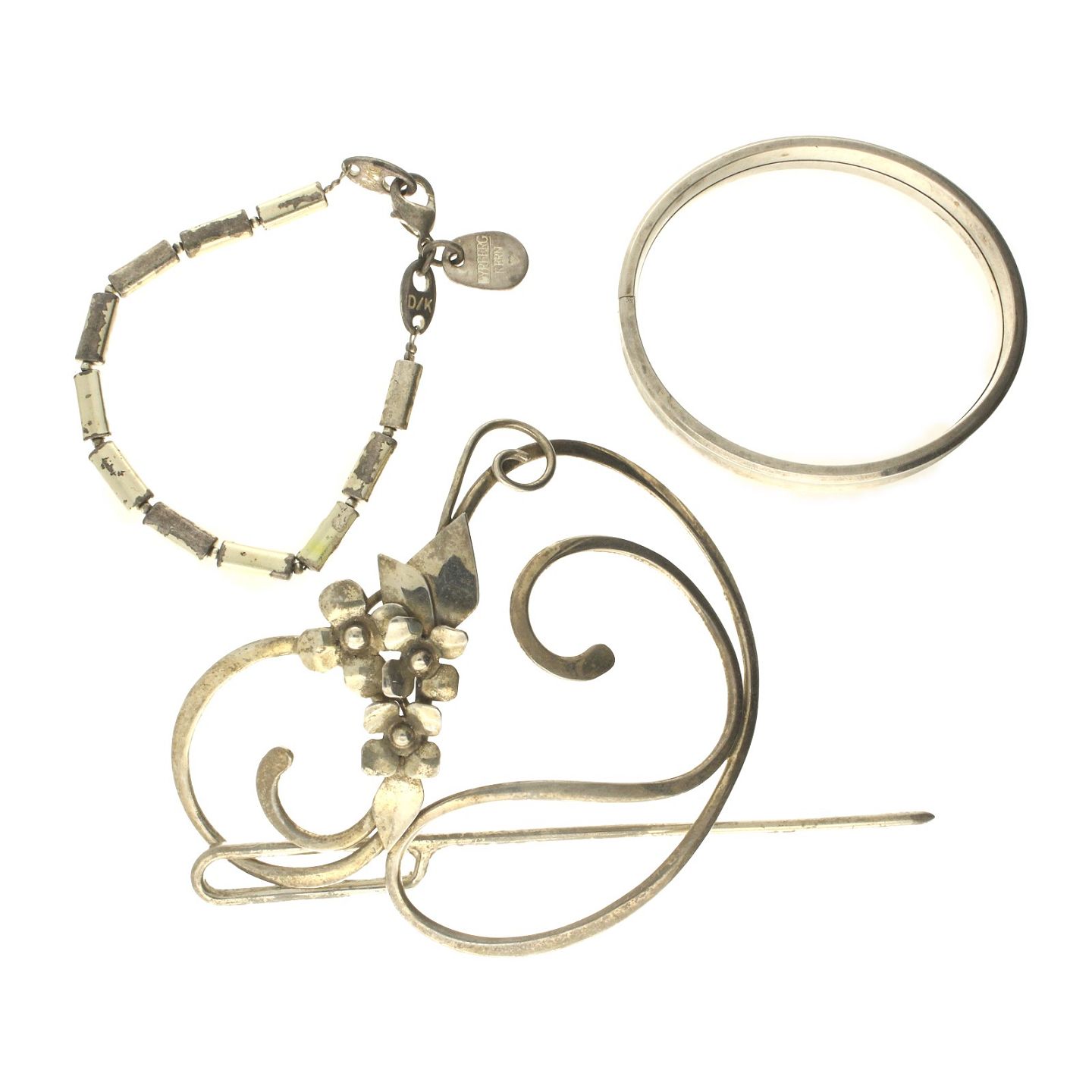 Armring af sølv samt bæltespænde og Dyrberg/Kern armbånd af metal (3)