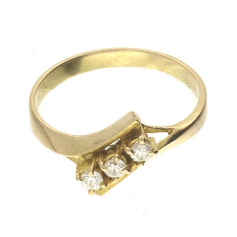 Ring af 14 kt. guld fattet med klare sten