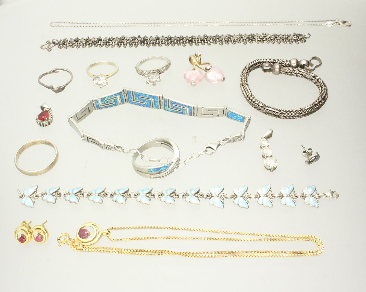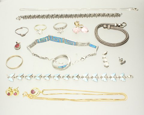 Samling smykker af sølv og forgyldt sølv bestående af: