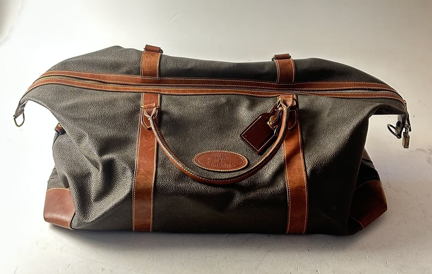Udført i scotchgrain med besætninger af brunt læder. Klassisk ternet for indvendigt.