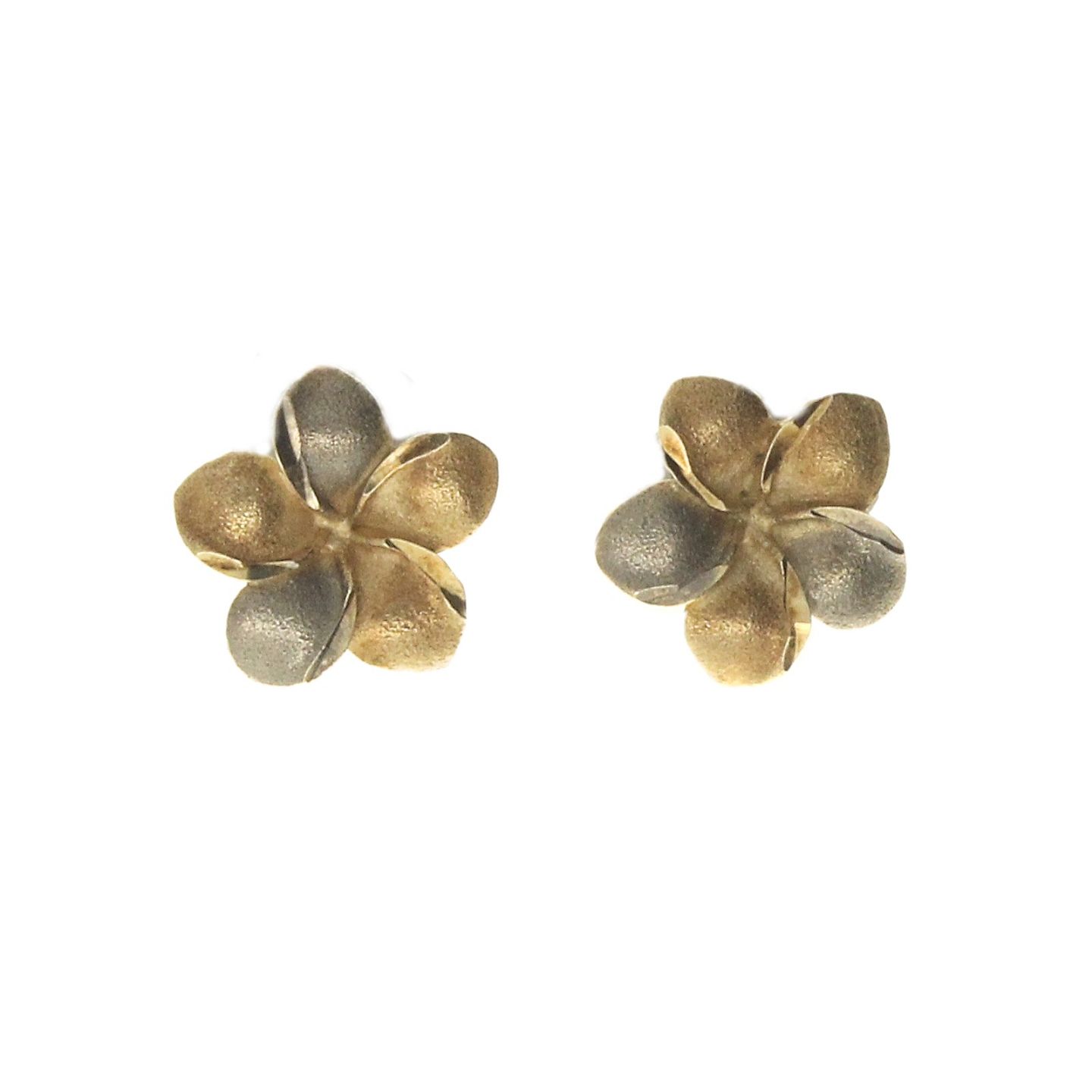 Par blomster ørestikker af tofarvet 14 kt. guld, låse af sterling sølv