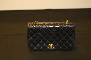 Coco Chanel, damehåndtaske, vintage, fremstillet i mørkeblåt lammeskind, H. 14 L. 24
