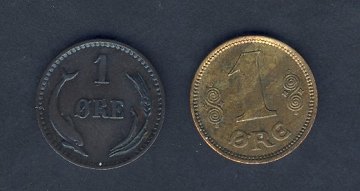 1 ører hhv. 1920 og 1880