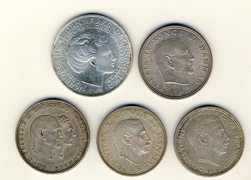 5 stk jubilæums mønter 1930, 37, 60, 64, 72