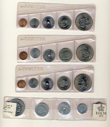Kongelig møntsæt 1974 samt 3 banksæt 1972