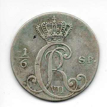 Christian VII, 1/6 speciedaler 1796, Hede 42