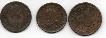 Engelske tokens, udmøntet som nødmønt til brug i de individuelle regioner hvor på navnet er præget, og desuden som privatmønt udgivet af firmaer - i alt 13 stk