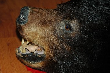 Bearskin, mounted with head, red canvas mounted on the back of the skin. L. 162 cm, B. 162 cm. No holes and the skin is in excellent condition. An item rarely seen on auction.