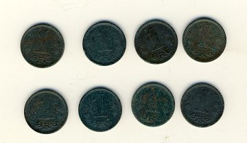 Samling 1 ører (8): 1923, 1922, 1921, 1920, 1919, 1916, 1913 og 1913