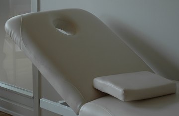 Massagebriks m. motor, blødt kunstskind, justerbar i højden og ryggen. L. 210 - Fremstår i god stand.
