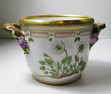 Royal Copenhagen FLORA DANICA skjuler, dess.3570, "Dryas octopetala l." samt "Anemone vahlü horn" Royal Copenhagen, H. 12 cm diam. 14,5 cm, Nypris: 24.400,-