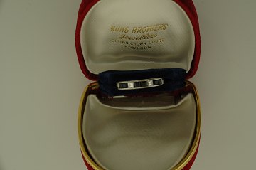 Ring af 14 kt hvidguld prydet med to smaragdslebne diamanter samt seks safirer, str. 53, æske medfølger