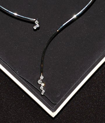 Georg Jensen Cascade halsring i 18 kt hvidguld, smukt prydet med brillanter på samlet 0,77 ct TW/VS, Stemplet "GJ" samt "750", omkreds: 38 cm (men den er meget fleksibel) vægt: 18,3 gr. Original boks samt certifikat (2006)medfølger. Nypris: 49.500 kr.