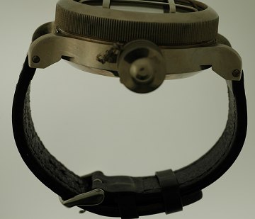Vandtæt til 700 meter. På urets bagside præget motiv med ubåd og rotorblad samt nummereret 1711, ekstra læderrem samt skruetrækker medfølger. Desuden kommer det hele med certifikat og original æske. Uret fungerer og er i pæn stand. diam. 60 mm (uden krone) 75 mm (med krone)